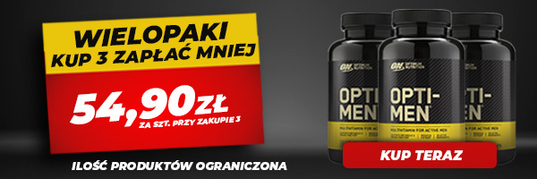 Ten wartościowy produkt ma w sobie witaminy, które pomogą w funkcjonowaniu Twojego ciała. Odpowiednie stężenie witamin D i K pozwoli Ci zachować silne, mocne kości. Są one podstawą ciała człowieka, ich kontuzje mogą zadecydować o Twoim funkcjonowaniu oraz samopoczuciu. Kolejna witamina – C - jest silnym antyoksydantem, który pomoże Ci w walce z wolnymi rodnikami. Ich nadmiar nazywany jest stresem oksydacyjnym. Na jego powstawanie narażeni są szczególnie sportowcy oraz osoby pod dużą presją. Produkt Opti Men od OPTIMUM NUTRITION zawiera w sobie także kompleks witamin z grupy B, takich jak Tiamina, Ryboflawina, Niacyna, witamina B6 czy B12. Wpływają one na funkcjonowanie układu nerwowego, pomagają walczyć ze zmęczeniem i pełnią istotną rolę w prawidłowym przebiegu metabolizmu energetycznego, a biotyna wspiera dobrą kondycję skóry i włosów. Suplement posiada w sobie też składniki, które pomogą naturalnie podwyższyć Twój poziom testosteronu, czym pozytywnie wpłynie na Twoje życie seksualne, a zawarty w składzie selen przyczynia się do prawidłowego przebiegu spermatogenezy. Warte uwagi są również ekstrakty roślinne: z zielonej herbaty oraz imbiru, które mogą działać pozytywnie na potencję. Preparat zawiera w sobie też aminokwasy BCAA, które wspomagają regenerację, a l-glutamina wzmacnia ich działanie. Jak widzisz, Opti Men od znanej firmy OPTIMUM NUTRITION to bogaty w składniki aktywne produkt, który pomoże Ci utrzymać ciało w dobrej formie. Dodatkowo ten sam suplement wesprze Twoją odporność, pozwoli pokonać zmęczenie oraz pomoże regulować poziom testosteronu, co wpłynie na Twoje życie seksualne. Zamów już teraz!