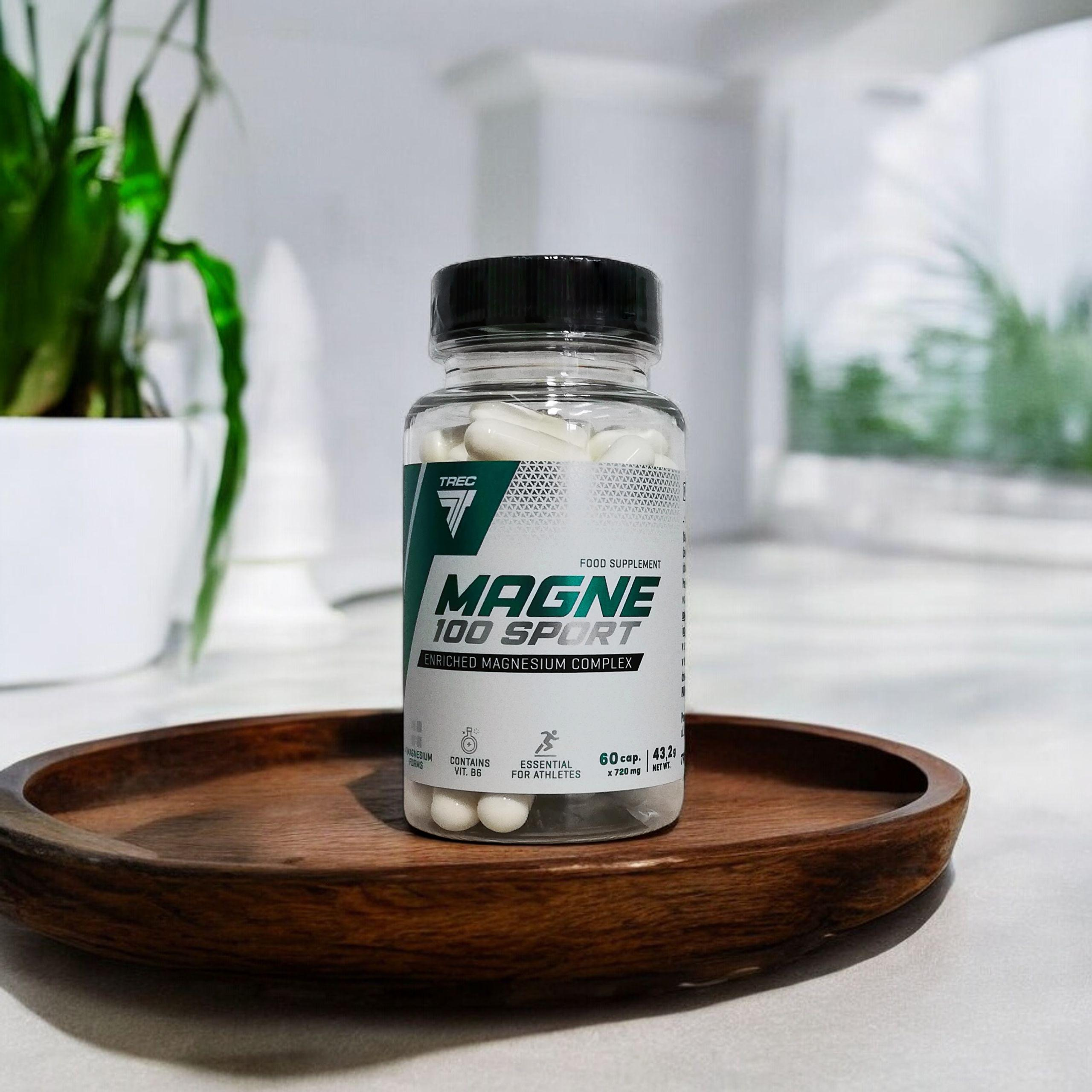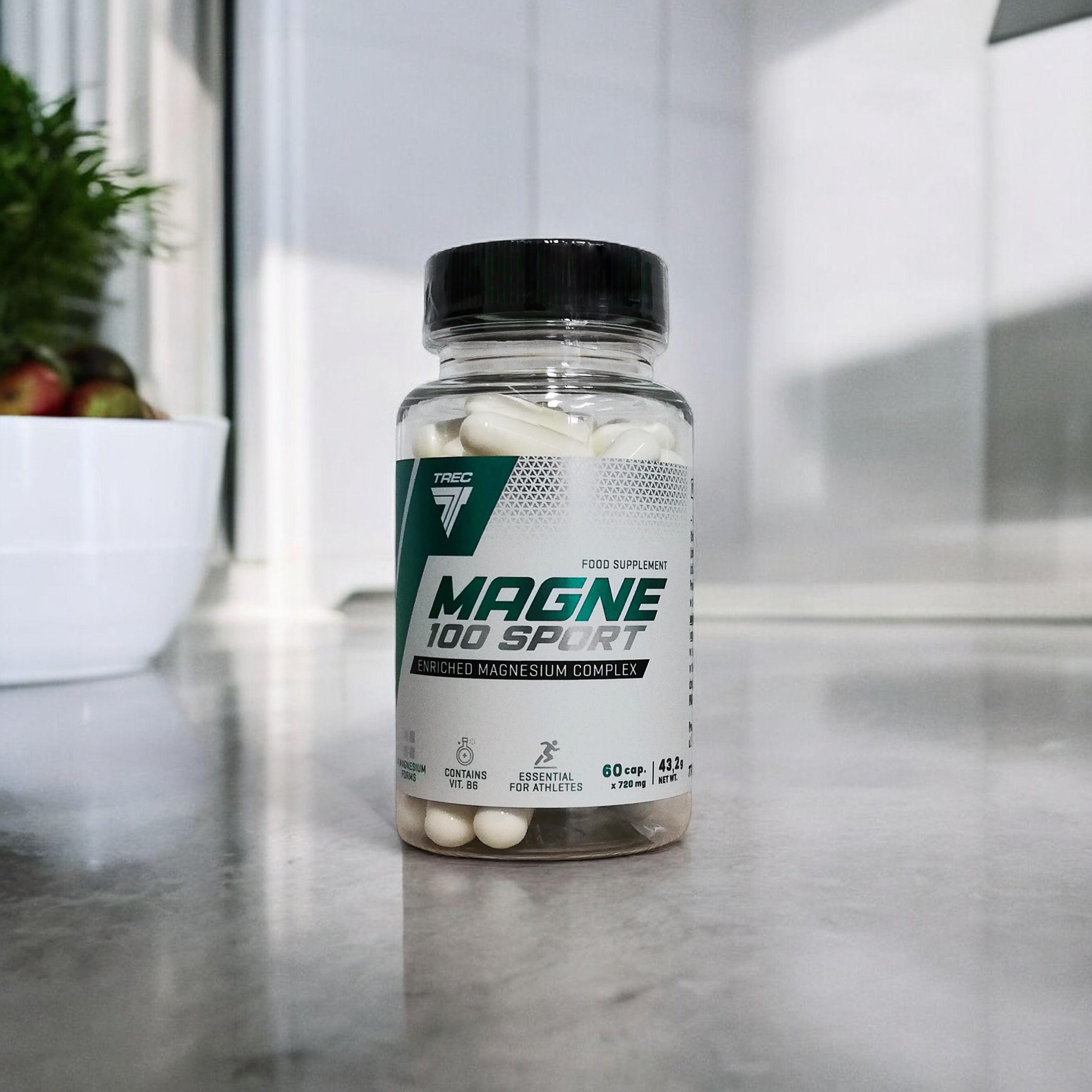 - Wysoka forma każdego dnia! 100% dziennego zapotrzebowania na magnez! Zaawansowany kompleks 4 form magnezu! MAGNE-100 Sport to wysokiej jakości kompleks czterech form magnezu oraz wit. B6, wspomagającej jego wchłanianie.