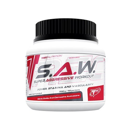 Chcesz aby Twoje mięśnie były większe i mocniejsze, a ruchy szybsze, silniejsze i bardziej precyzyjne? Chcesz oko w oko stanąć ze swoimi słabościami i maksymalnie wykorzystać tkwiący w twoim organizmie potencjał? Wypróbuj S.A.W. – najsilniejszy stack przedtreningowy jaki kiedykolwiek powstał w laboratoriach TREC NUTRITION. Wyostrz swoje zmysły! Poczuj niesamowity przypływ energii i otwórz się na zupełnie nowe doznania treningowe. Od teraz Twój mózg uzyska absolutną kontrolę nad pracą mięśni! Przenieś swoje ćwiczenia na najwyższy poziom intensywności, o którym wcześniej nawet nie myślałeś. Zamień zwykły trening na SUPER ANABOLIC WORKOUT!