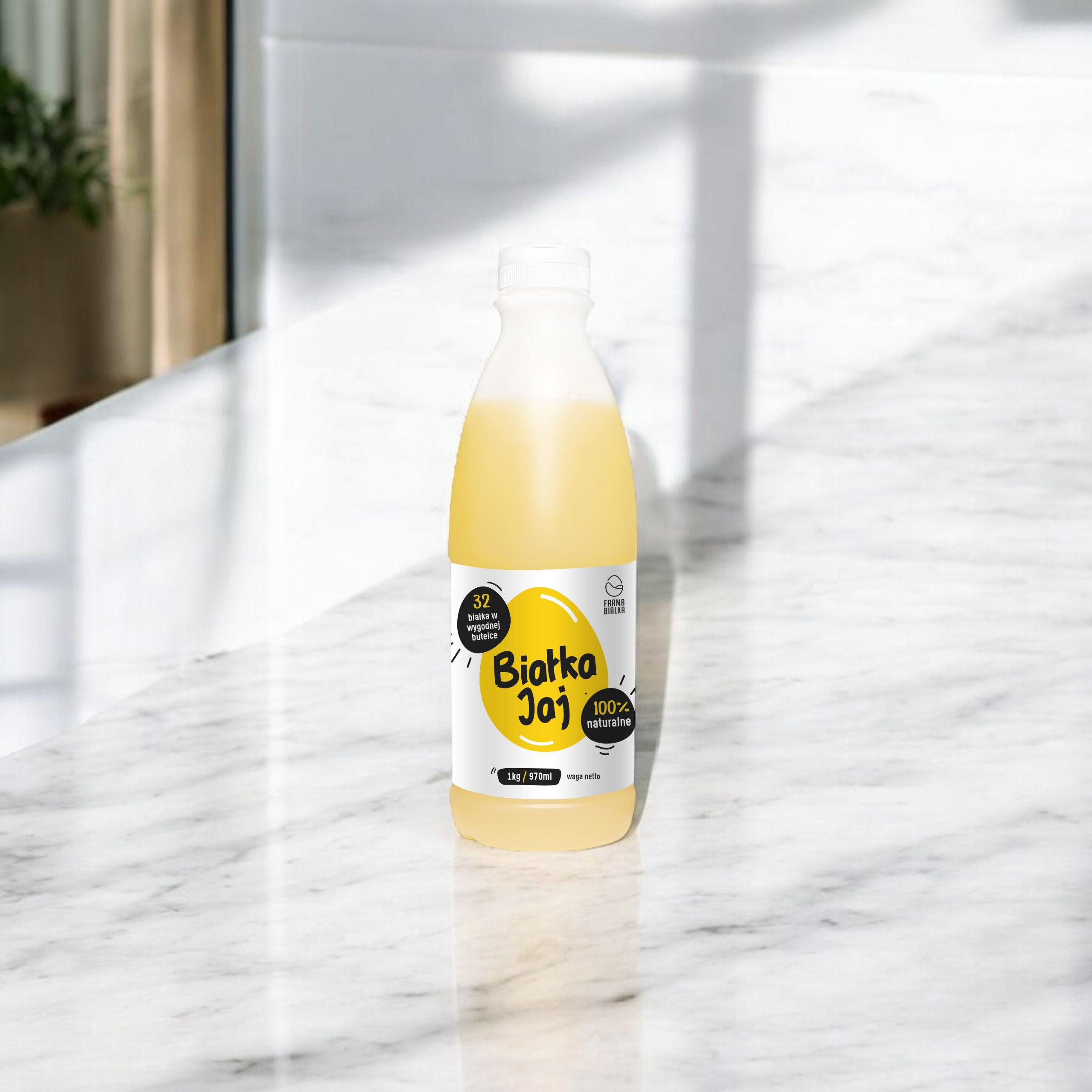 Białka Jaj to najwyższej jakości pasteryzowane białko jaj kurzych (z niewielką zawartością żółtka), gotowe do spożycia, umieszczone w butelce mieszczącej aż kilogram tego składnika. Nie znajdziesz w nim dodatków, konserwantów oraz barwników. Ten rodzaj białka charakteryzuje się świetnym przyswajaniem, zawiera bardzo małą ilość tłuszczy i węglowodanów. Powinieneś wiedzieć, że jajka z którego pochodzi białko mają klasę A, czyli kury są hodowane metodą chowu ściółkowego. Oznacza to, że kupując produkt od Farmy białka wspierasz dobry byt kur, które nie muszą cierpieć w ciasnej klatce. W końcu szczęśliwe kury znoszą zdrowsze jajka.