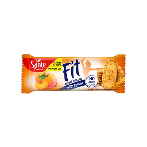• Fit Cereal Biscuits od Sante, to pyszne, dietetyczne ciasteczka, które wyróżnia doskonały, owocowy smak i bogactwo błonnika pokarmowego. Nie zawierają cukrów dodanych, ani olejów palmowych, dlatego są zdrowszą alternatywą w świecie słodyczy.
