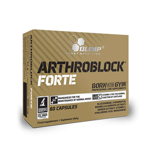 - Arthroblock Forte Sport Edition od Olimp to suplement, który w swoim składzie zawiera siedem składników aktywnych o dobroczynnym działaniu. Za ich sprawą poprawi się kondycja aparatu ruchu, wzmocni tkanką łączna. Doskonały jako element profilaktyki