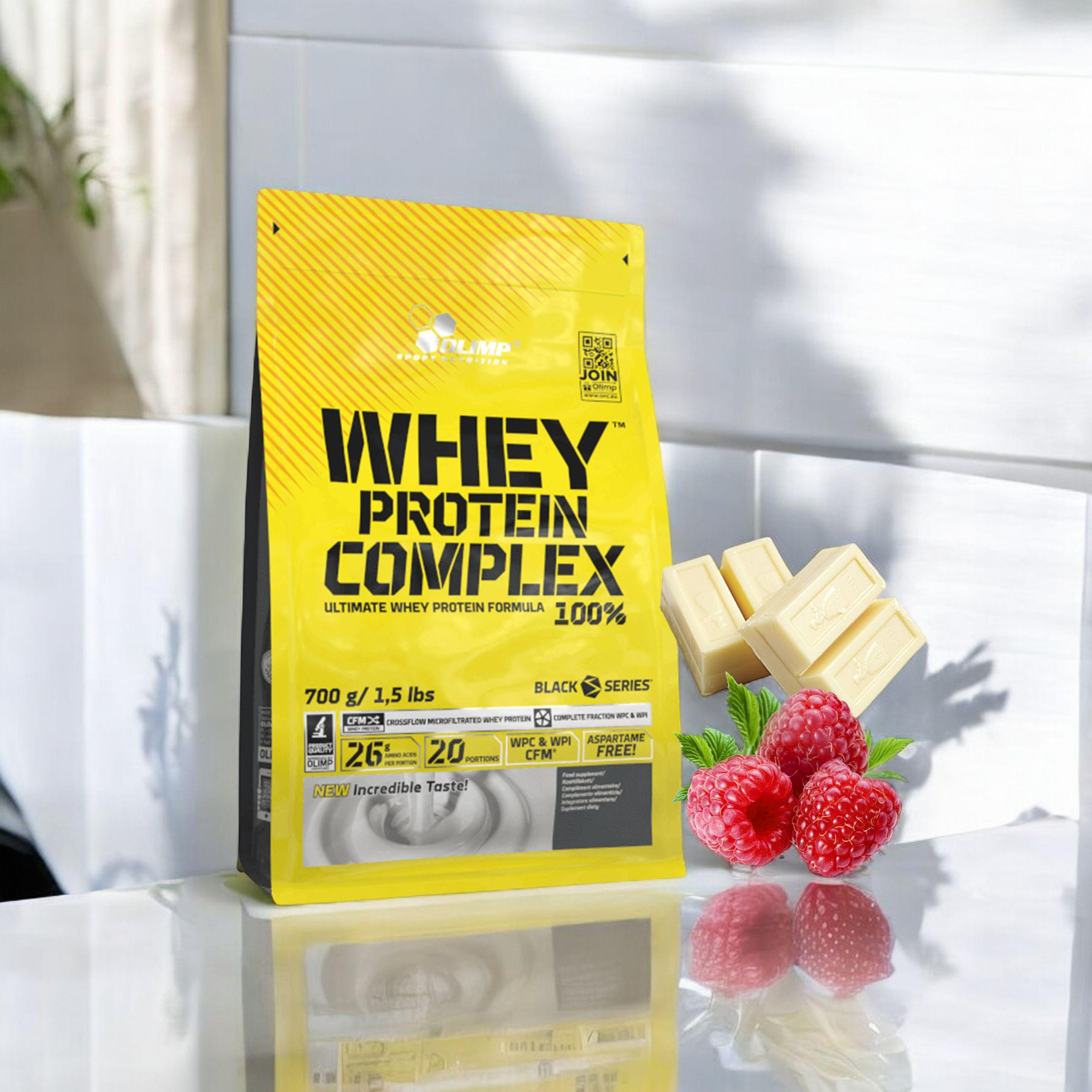 • Whey Protein Complex to Uniwersalny matrix białkowy marki OLIMP. Wysokiej jakości białko wielofrakcyjne zawierające ultrafiltrowany koncentrat WPC oraz izolat białek serwatkowych CFM. W porcji aż 26 gramów białka!