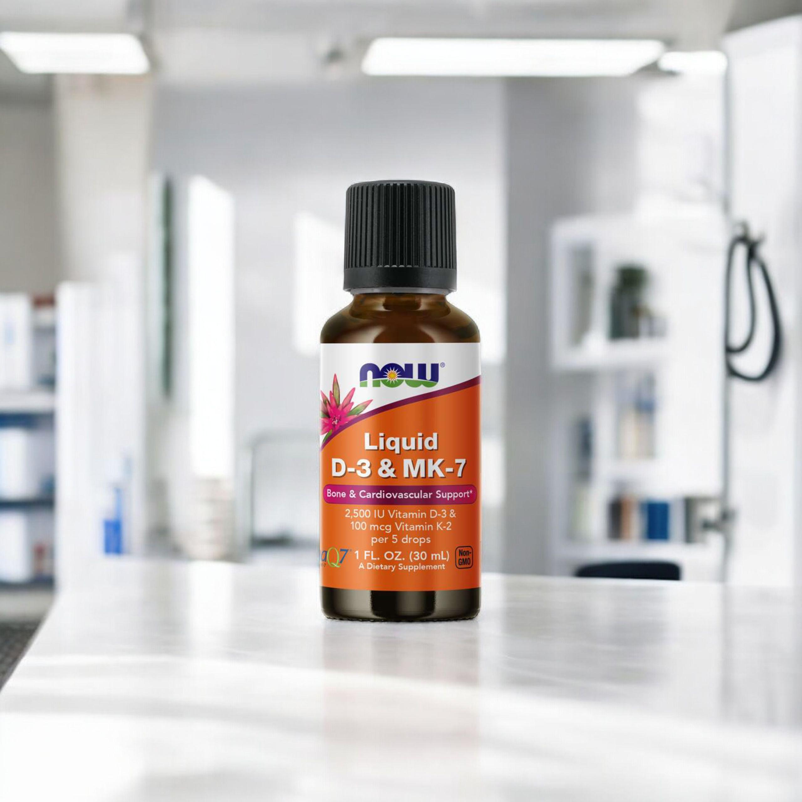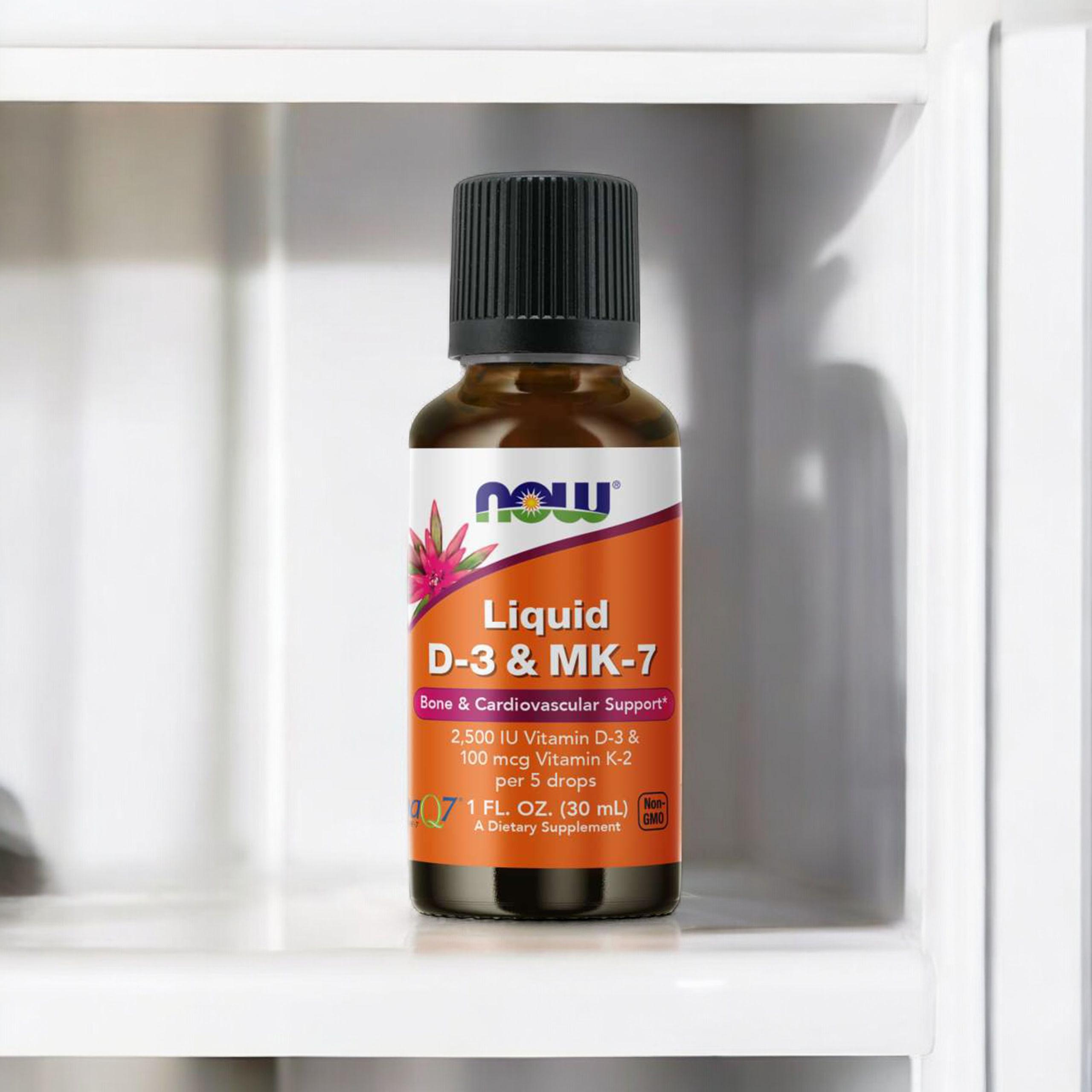 Now Liquid D-3 & MK7 to suplement diety w kroplach, który łączy witaminę D3 i K2 - dwa niezwykle ważne składniki odżywcze, które posiadają potwierdzone właściwości w zakresie zdrowia kości, zębów i układu sercowo-naczyniowego. Witamina D3 współpracuje z wapniem - wspiera jego wchłanialność i przyswajalność w organizmie. Dlatego jest niezbędna, by zachować zdrowe i mocne kości. Najnowsze badania wskazują również, że jej właściwości oddziałują na prawidłową pracę układu odpornościowego.