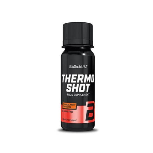 - Thermo Shot od Biotech to spalacz tłuszczu w wygodnej do stosowania płynnej formie. Ma on działanie termogeniczne, lipotropowe, a nawet wywołujące pompę mięśniową. Wszystko dzięki zastosowaniu dwunastu wartościowych składników aktywnych w dużych dawkach