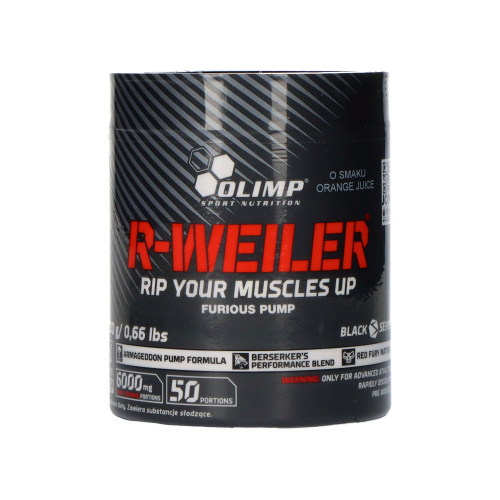 Olimp R-Weiler to przedtreningówka w proszku stworzona, aby zapewnić Ci efekty jeszcze lepsze, niż się spodziewasz! Jeśli zajmujesz się treningiem wytrzymałościowym, wytrzymałościowo-siłowym, kulturystyką lub po prostu chcesz poczuć maksymalną siłę – właśnie znalazłeś produkt dla siebie. R-Weiler to suplement diety najwyższej jakości, poddawany kontroli na każdym etapie produkcji, wytwarzany tylko z najlepszych składników. 13 substancji aktywnych zastosowano w najkorzystniejszych proporcjach. Bez względu na to, czy trenujesz profesjonalnie, czy nie, z R-Weiler poczujesz przypływ mocy. Przekonaj się, ile tak naprawdę może Twoje ciało!