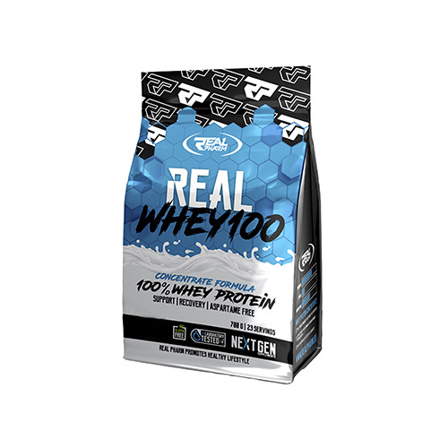 - Real Pharm Whey 100 zapewnia szybką absorpcję białka i chroni mięśnie przed katabolizmem. Idealny dla sportowców, oferuje wysoką jakość z minimalną ilością tłuszczu i węglowodanów.