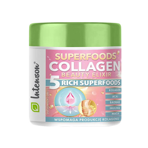 • Collagen Beauty Elixir - superfood w proszku wspierający zdrowie skóry, włosów i paznokci. Unikalna kompozycja składników odżywczych, w tym kolagenu, dla zachowania młodego wyglądu i dobrej kondycji organizmu.