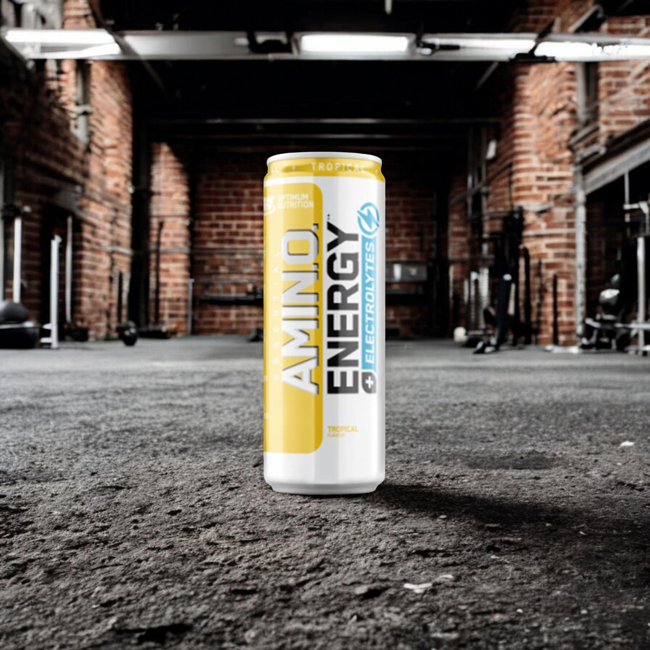 - Amino Energy drink Optimum Nutrition to orzeźwiający napój energetyczny. Stanowi doskonałe źródło energii z kofeiny pochodzącej z zielonej herbaty i kawy. Zawiera dużą dawkę aminokwasów, w tym BCAA, a także dużą dawkę elektrolitów.