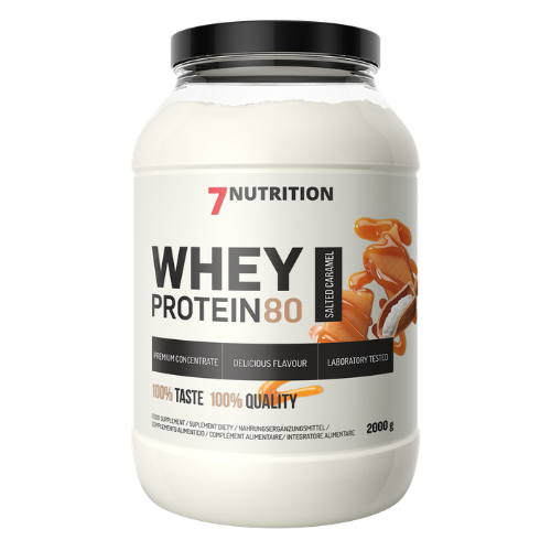- 7Nutrition Whey Protein 80 to wysokobiałkowa odżywka oparta na koncentracie białka serwatki. Produkt posiada niską zawartość cukru. Dzięki rozbudowanej formule, skutecznie pomaga budować beztłuszczową masę mięśniową. Dostępny w formie proszku.
