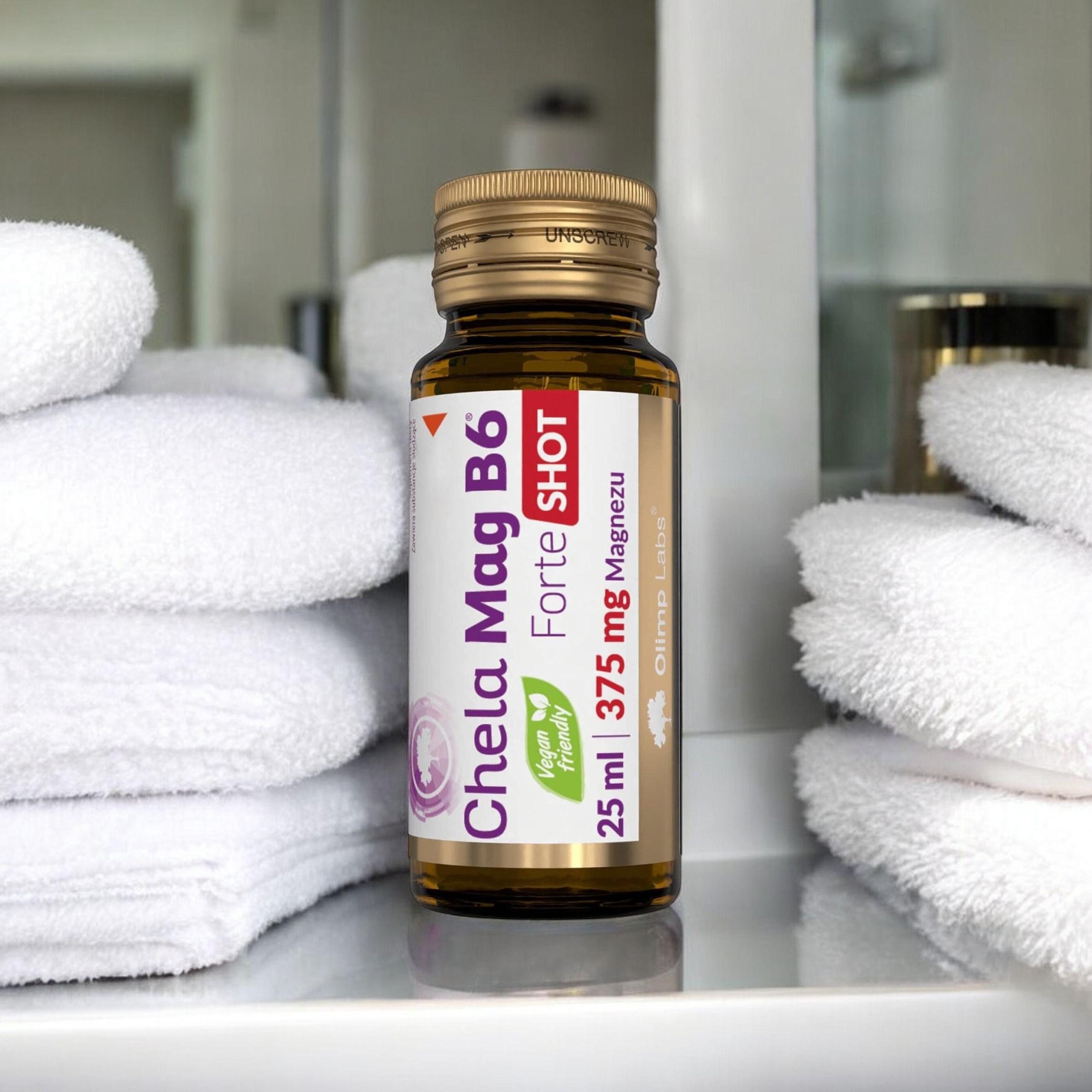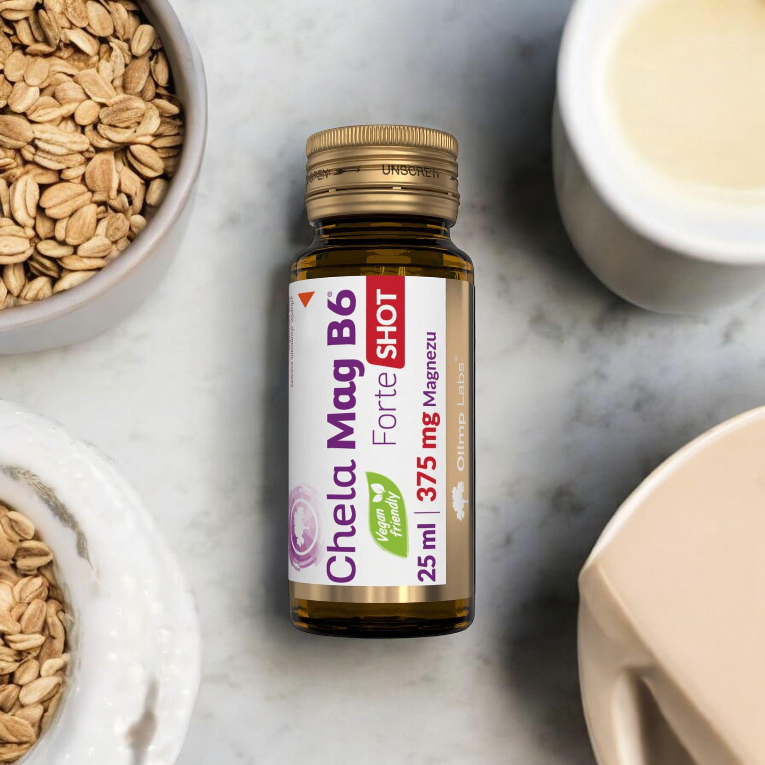 - Chela-Mag B6 Forte Shot - wysoko przyswajalna forma magnezu w płynie. Jedna ampułka pokrywa 100% dziennego zapotrzebowania, wspierając mięśnie, kości i układ nerwowy.