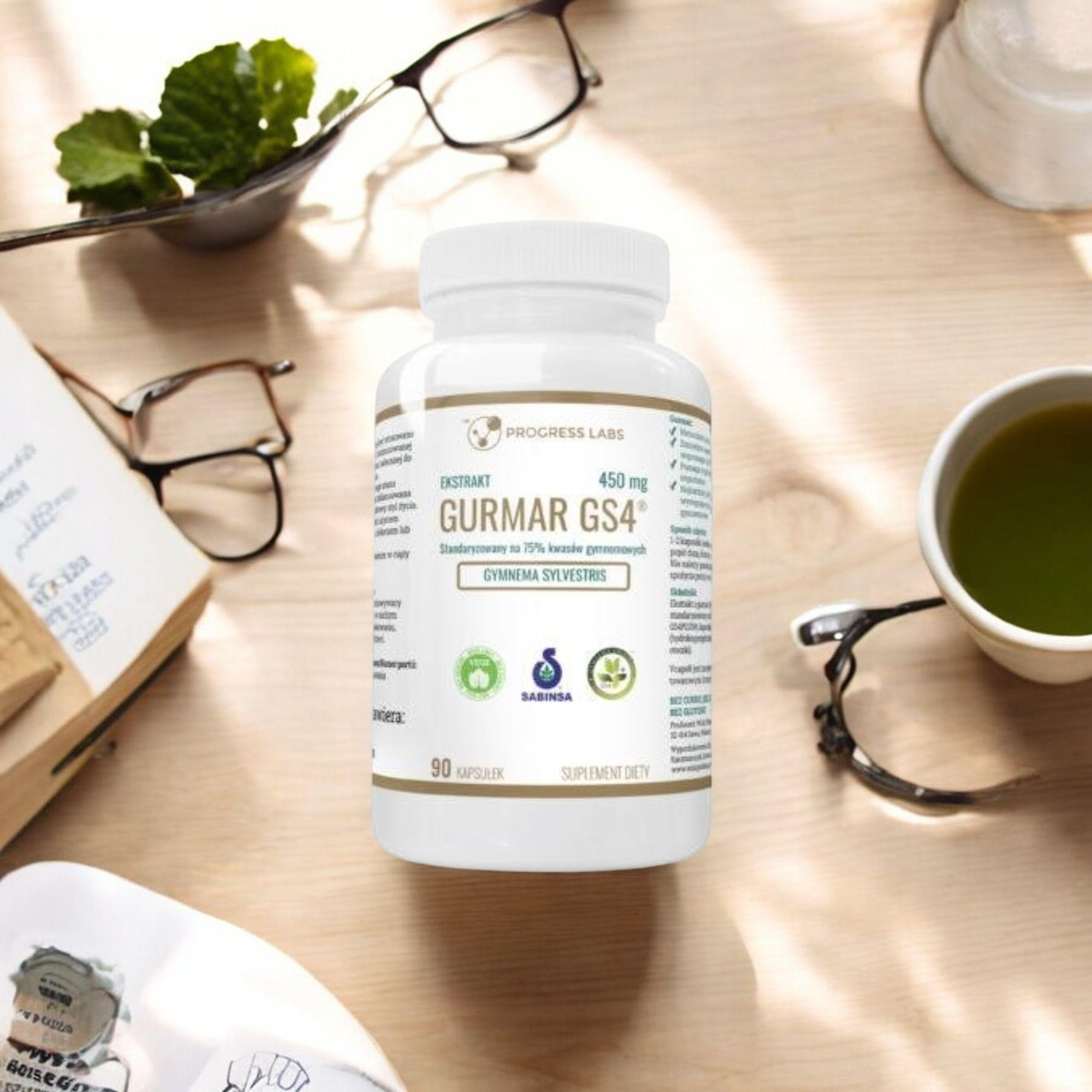 - Ekstrakt Gurmar GS4 - suplement diety regulujący poziom cukru we krwi i zmniejszający apetyt na słodycze. Zawiera 75% kwasów gymnemowych, odpowiedni dla wegan i wegetarian.