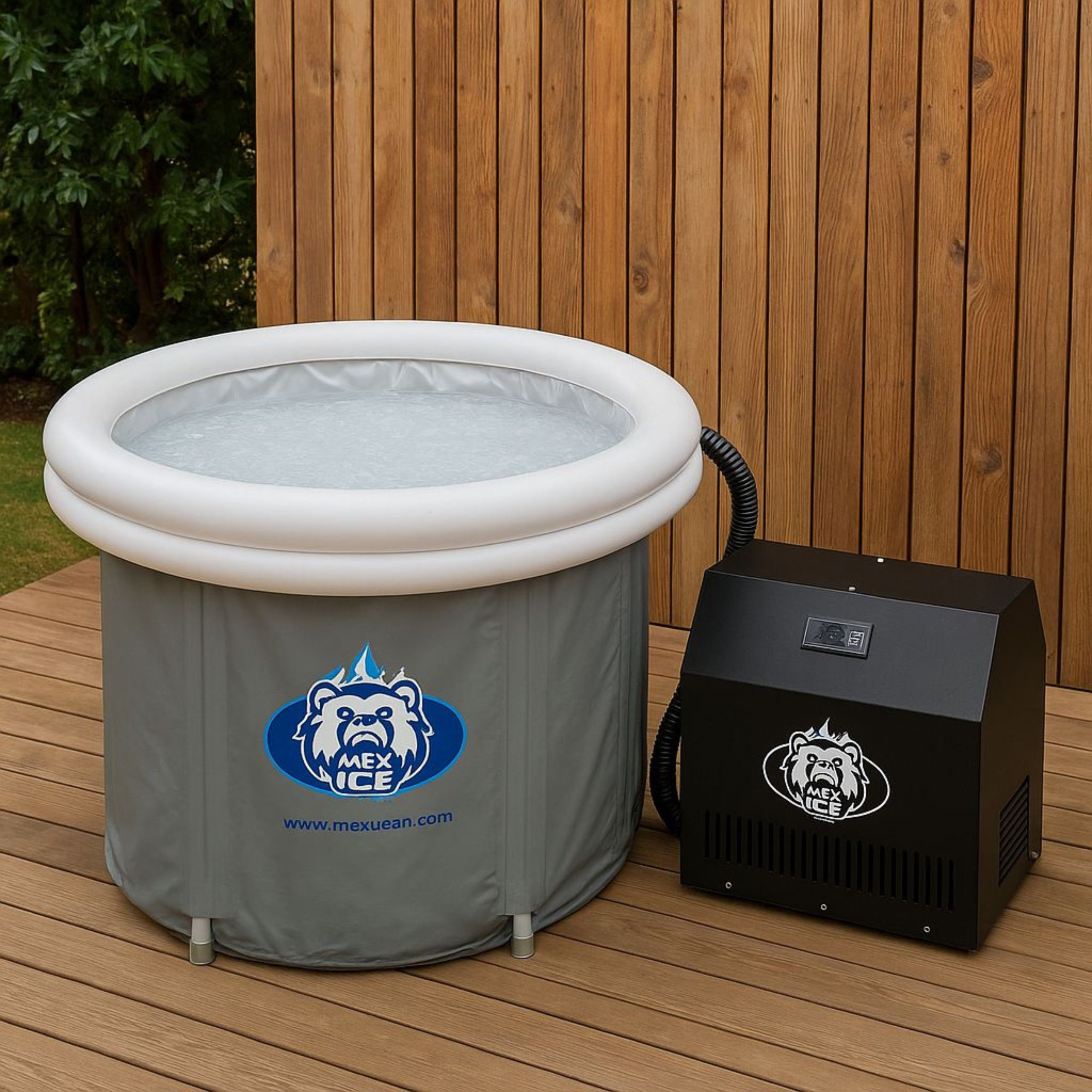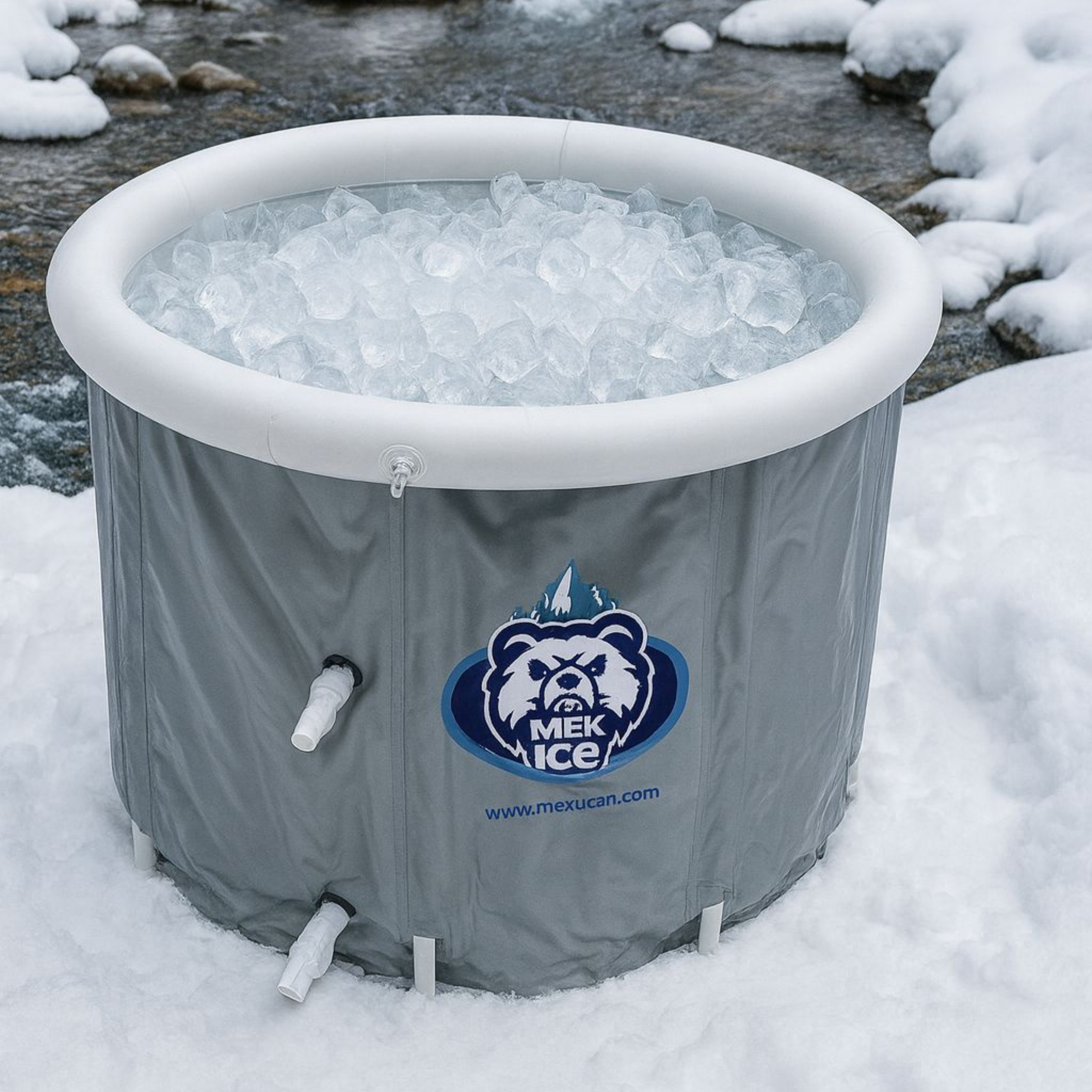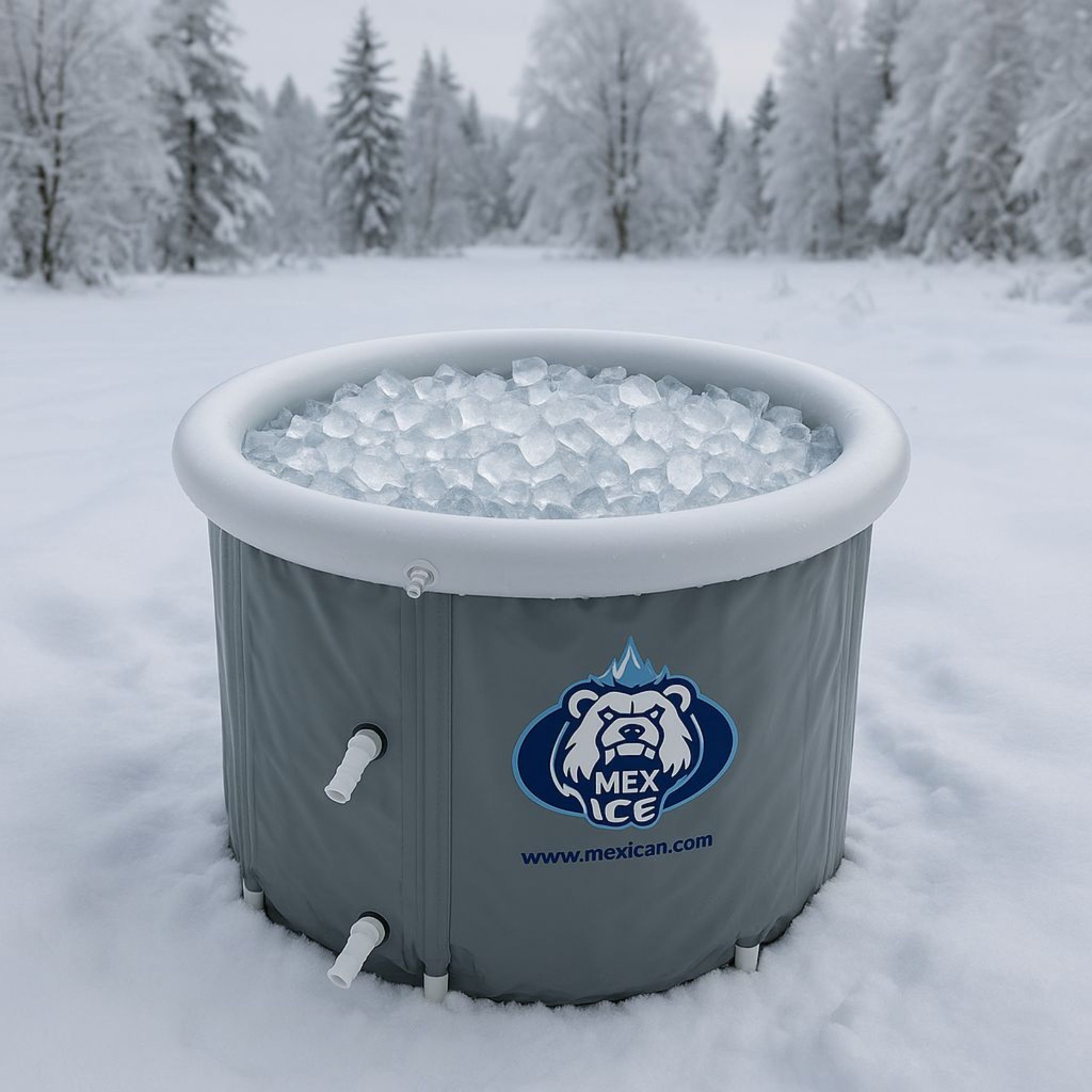 Wanna składana MEX ICE to najlepszy wybór pozwalający zacząć przygodę z morsowaniem i czerpać korzyści zdrowotne przez cały rok. Posiada dwa otwory boczne i jeden otwór dolny, służący do wypuszczania wody, a także pompowaną obręcz, która utrzymuje sztywność konstrukcji (zadbaliśmy o to, aby zawór zapobiegał wydostawaniu się powietrza na zewnątrz). Jest to idealne rozwiązanie dla tych, którzy stawiają na ekonomię. Cena wanny zawiera 2 pokrywy (wewnętrzną i zewnętrzną), choć większość producentów oferuje je za dodatkową opłatą, oraz 8 wsporników usztywniających, o dwa więcej niż podobne wanny innych marek. Wanna została zaprojektowana z myślą o maksymalnej swobodzie użytkowania i stabilności konstrukcji. Jej obwód jest o 20 cm większy od produktów konkurencyjnych, co pozwala na pełne zanurzenie ciała, bez względu na wzrost i masę osoby zażywającej kąpieli (testowana z udziałem koszykarzy o wzroście przekraczającym 2 m i strongmenów o masie znacznie przekraczającej 100 kg). To jedyna na rynku wanna składana, która posiada opcję połączenia z agregatem chłodniczym, który można dokupić oddzielnie.