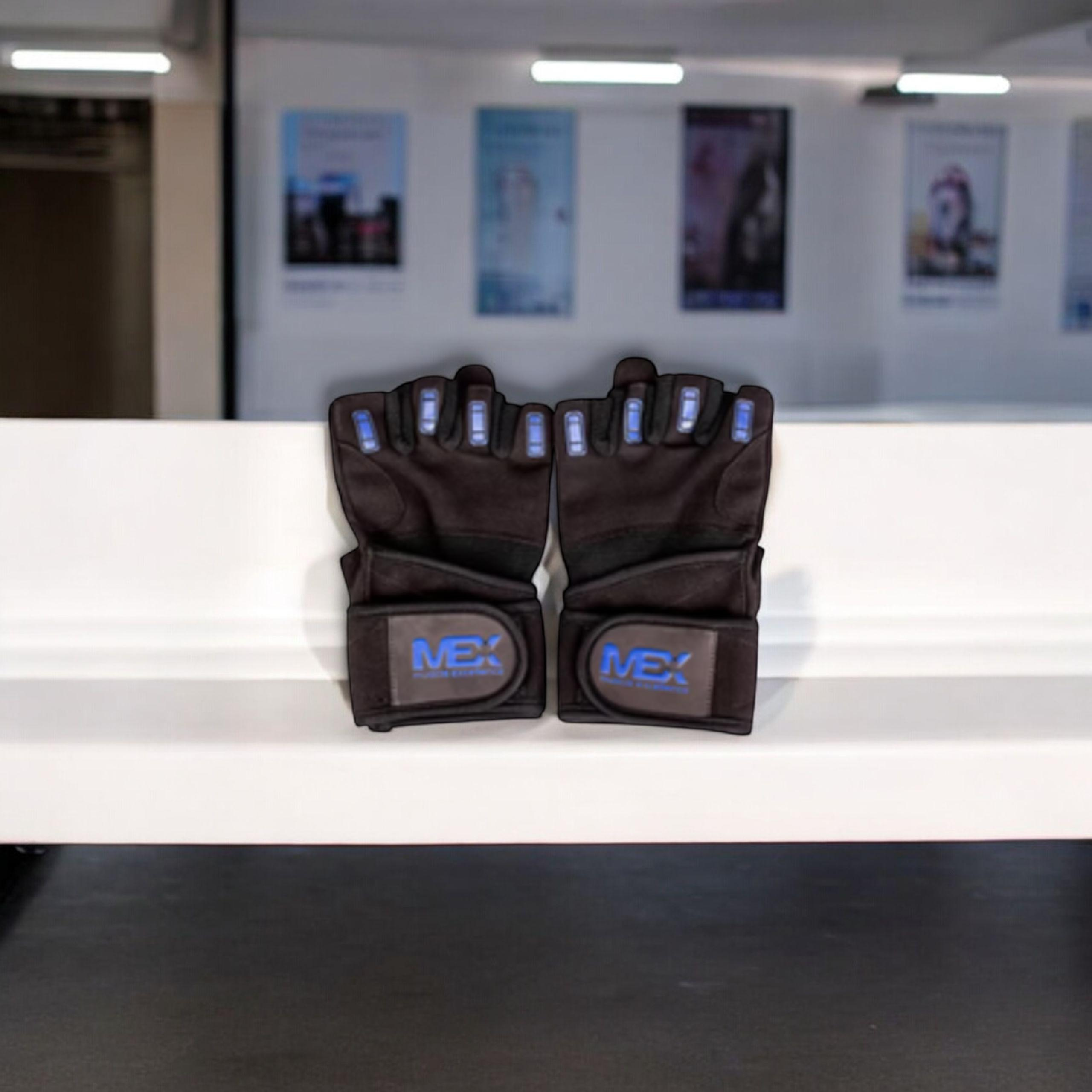 - Profesjonalne rękawice treningowe MEX NUTRITION Gel Grip Blue. Żelowe wkładki amortyzujące, silikonowy nadruk dla lepszej przyczepności i długi pasek ochronny na nadgarstek zapewniają komfort i bezpieczeństwo podczas intensywnych treningów.