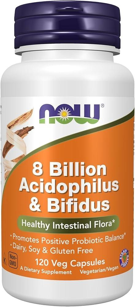 - Wzmocnij swoją florę jelitową z probiotykami NOW 8 Billion Acidophilus & Bifidus. Te wegańskie kapsułki dostarczają 8 miliardów jednostek tworzących kolonie (CFU), wspierając zdrowie układu pokarmowego.
