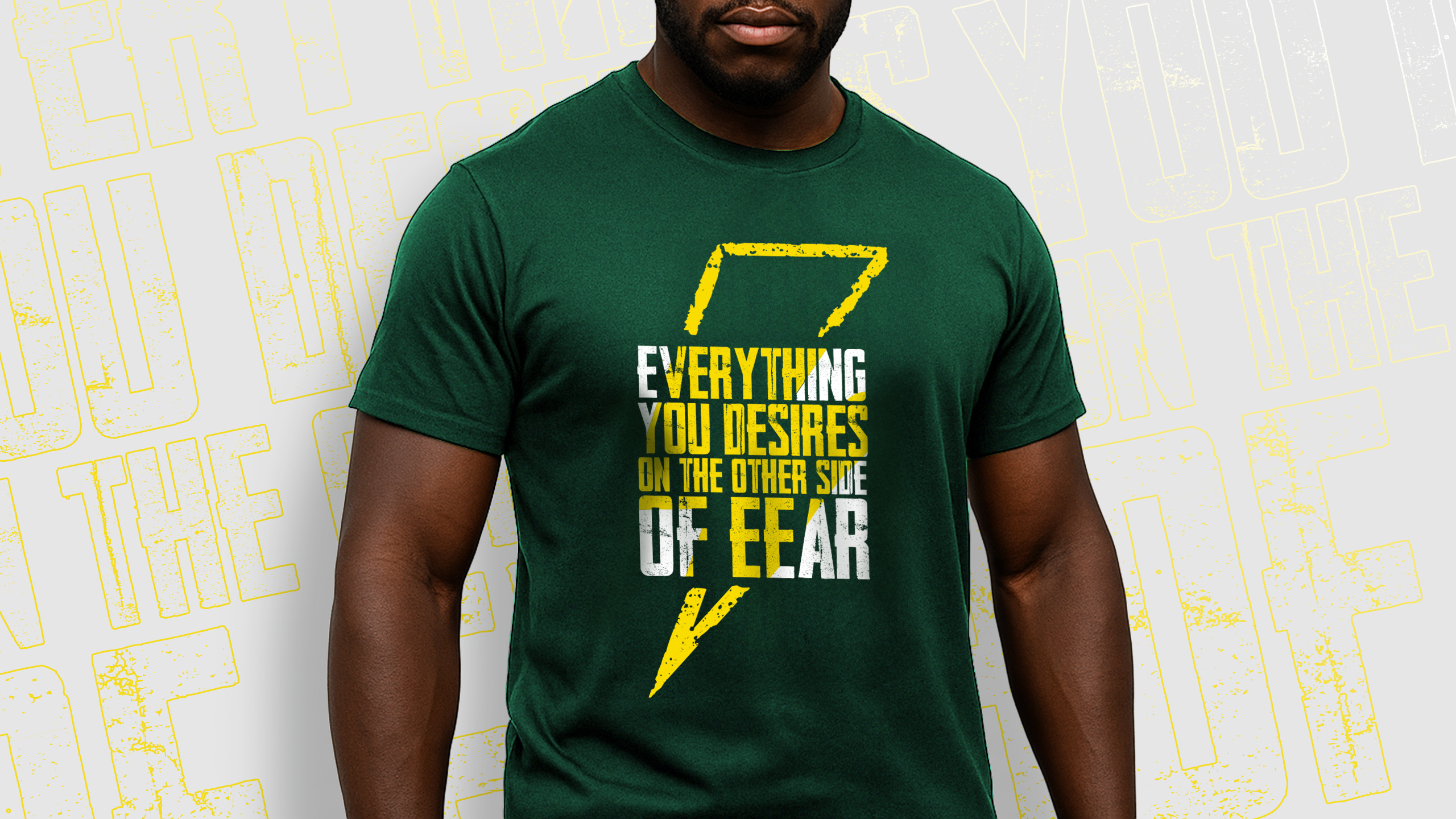 Ten T-shirt inspiruje do działania, motywuje do walki i staje się codziennym manifestem Twojej siły. Bo kiedy zakładasz “Everything You Desires On The Other Side Of Fear”, nie zakładasz zwykłej koszulki — zakładasz postawę, która nie zna granic.