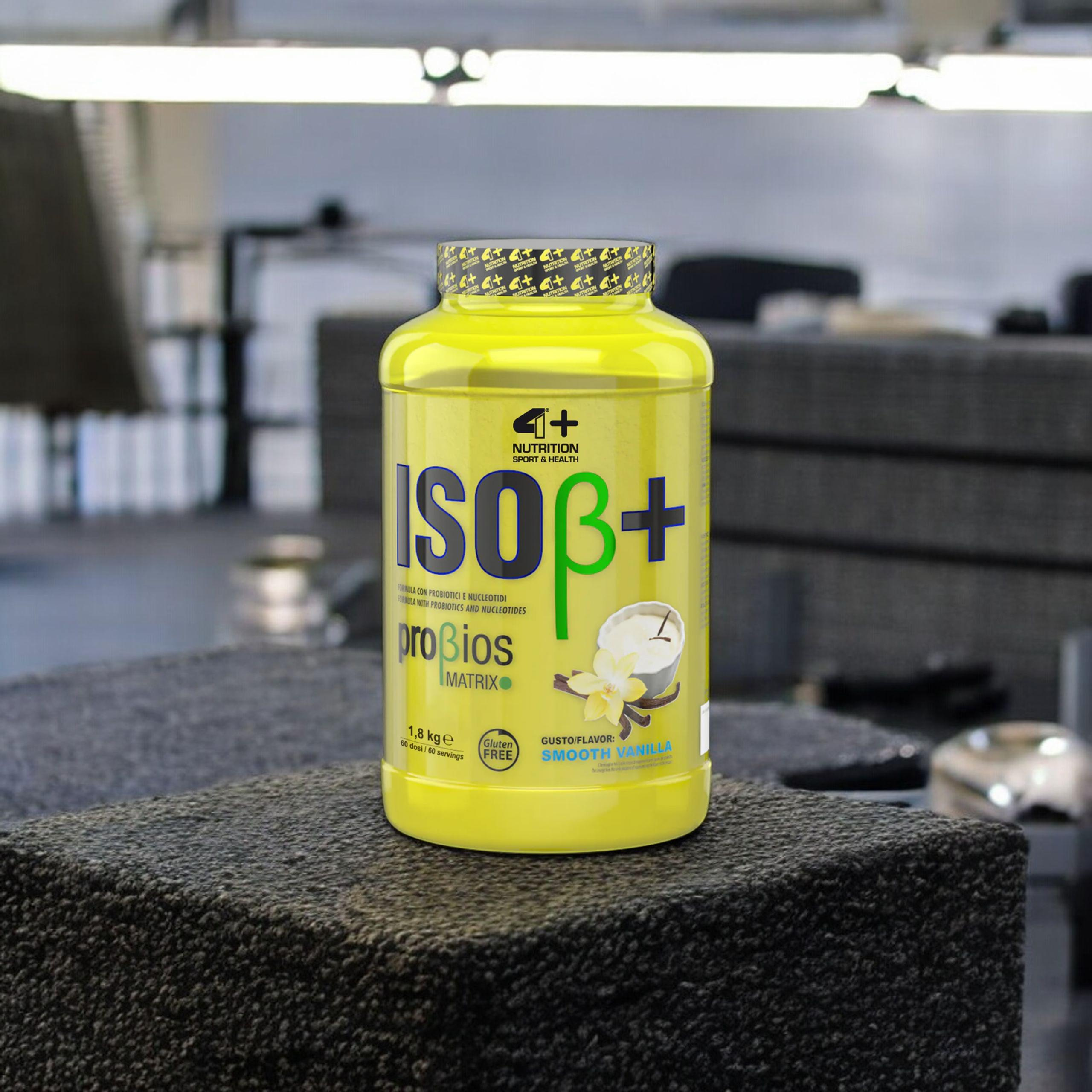 Serwatka użyta w białku została skrupulatnie przefiltrowana na nowoczesnej linii produkcyjnej włoskiej firmy 4+ NUTRITION, co jest gwarancją oczyszczenia produktu z laktozy. Zaletą tego typu białek jest pocięcie protein na krótsze łańcuchy aminokwasów, dzięki czemu jest ono bardzo szybko absorbowane w żołądku i dwunastnicy. Wysoka zawartość aminokwasów, w tym BCAA, a dokładniej mówiąc glikolitycznej L-Leucyny (100 gramów dostarcza prawie 10 g Leucyny), tak pożądanej w potreningowym szlaku M-Tor, to z kolei błyskawiczna regeneracja i naprawa uszkodzonych włókien. Zatem ten wysokiej klasy izolat będzie idealnym wsparciem po treningu. Obniżona zawartość węglowodanów i tłuszczy sprawi, że ISO+ Probiotics to właściwe rozwiązanie dla sportowców, zwłaszcza zawodowców, jaki i osób odchudzających się oraz dokładnie liczących kalorie. Dodatkowo produkt 4+ został wzbogacony zestawem podstawowych witamin z grupy B.