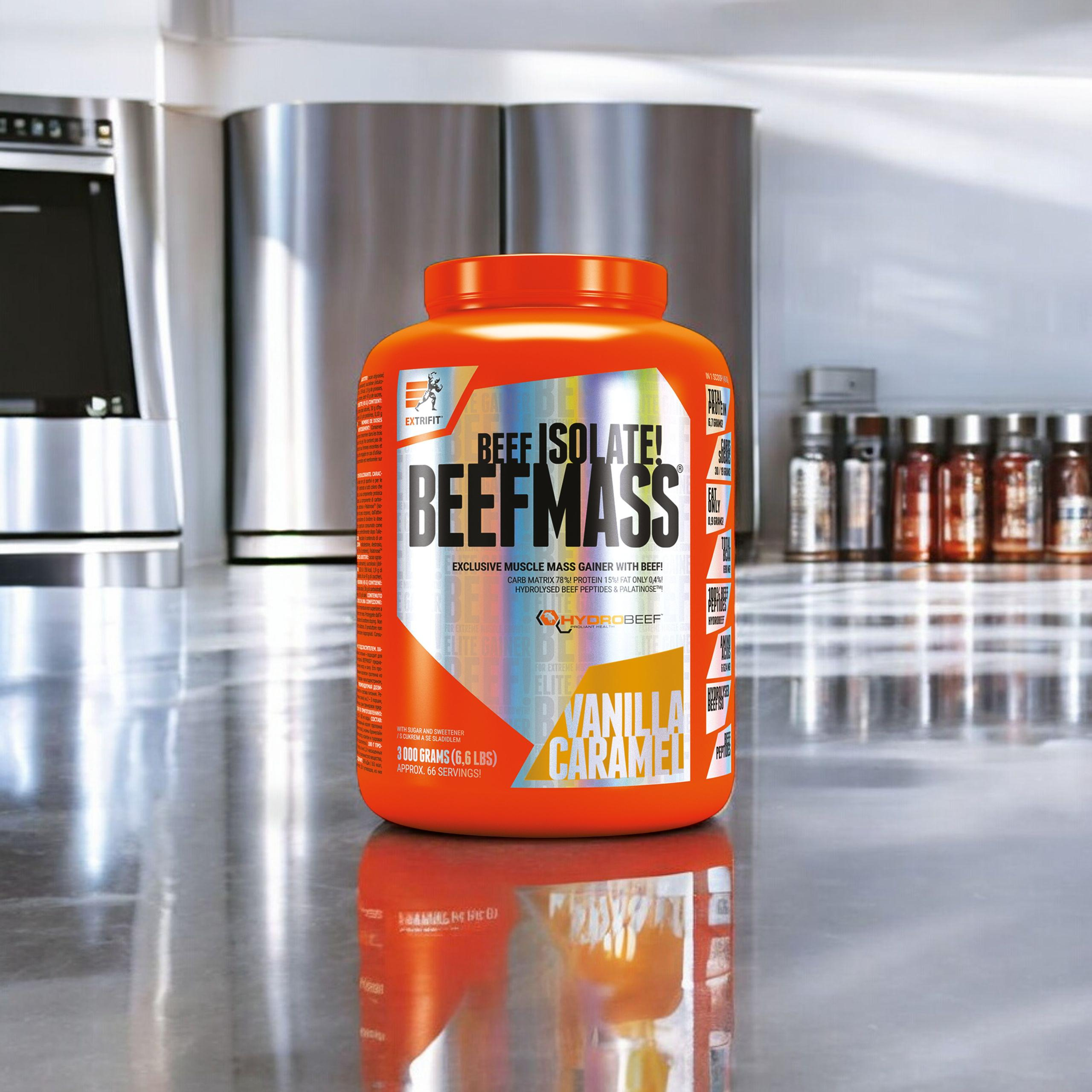 - Beef Mass to odżywka węglowodanowo-białkowa typu gainer, która w odróżnieniu od tradycyjnych gainerów nie dostarcza zbędnego cukru oraz ciężkostrawnego białka. Oparta jest głównie o izolat białka wołowego, wspierającego prawidłowy rozwój masy mięśniowej.